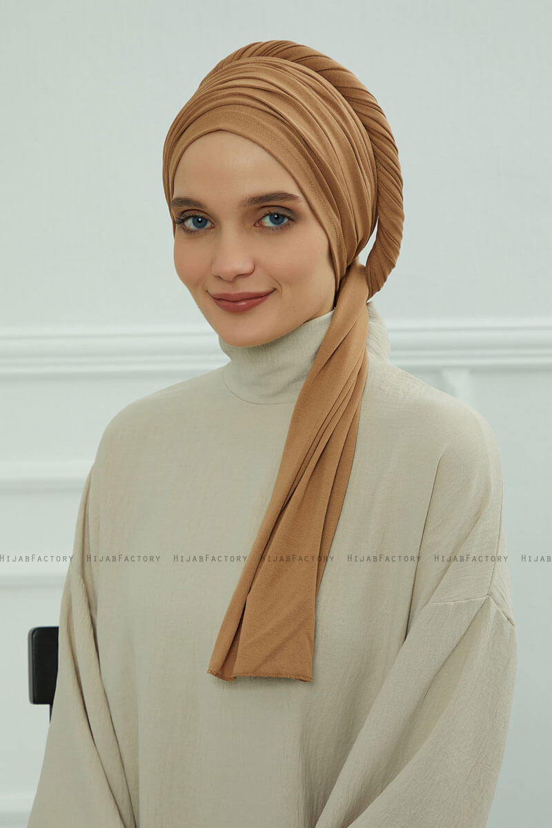 Rebecca - Light Brown Cotton Turban From Ayse Turban.
