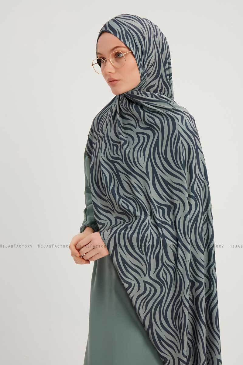 Hafiz - Navy Blue Patterned Hijab From Saless