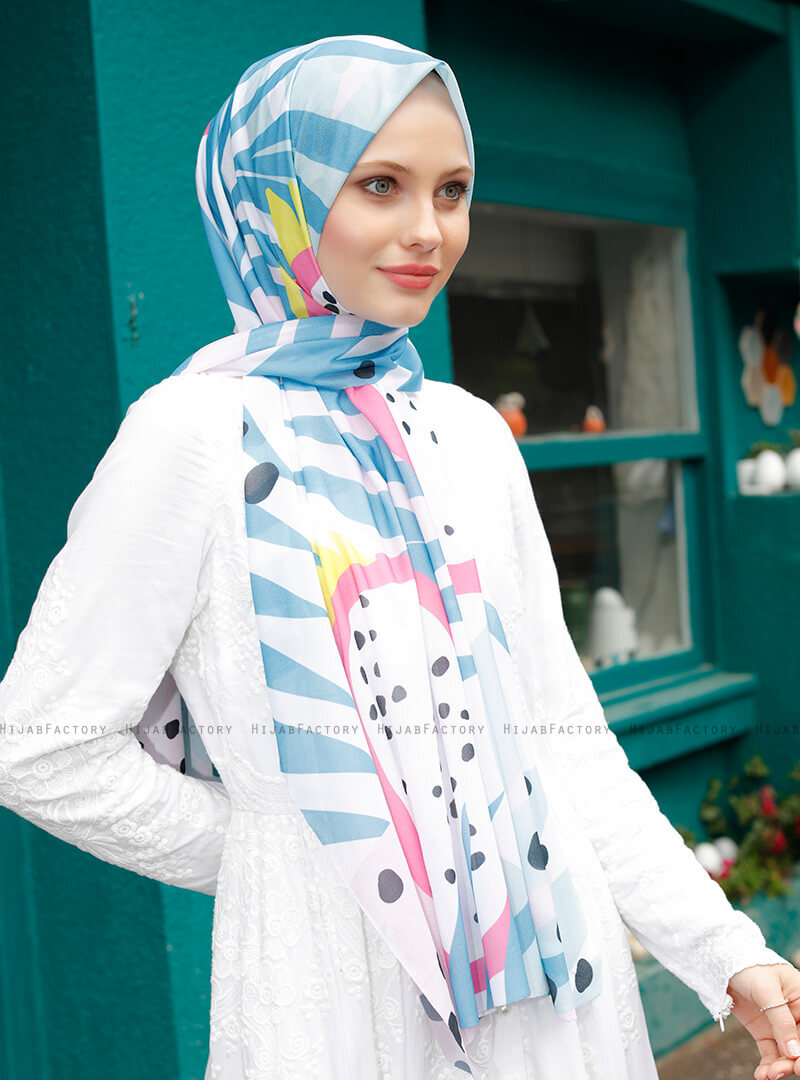 Pariza - Turquoise Patterned "Jersey & Chiffon" Hijab From Sal Evi.